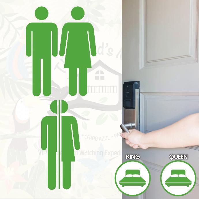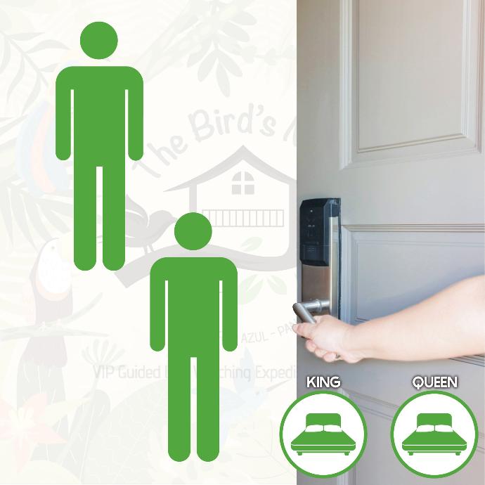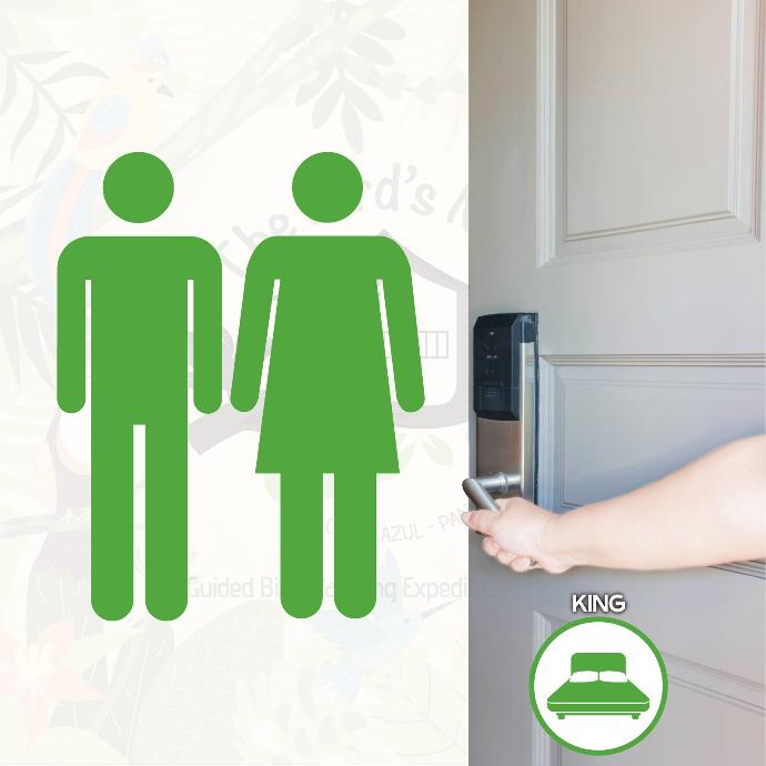 Embrace the luxury of solitude in our Solo Birder – King Bedroom. Priced at $575 per night, this package is designed for the individual birdwatching enthusiast seeking a private and comfortable experience. Submerge yourself in the tranquility of Cerro Azul, enjoying a room that combines cute charm with adventurous spirit. Your stay includes a full-time VIP Personal Tour Guide, all meals, and an assortment of snacks and drinks, ensuring a comprehensive birding retreat.